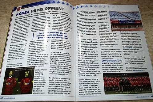 2008년 자매 결연을 제의 했던 영국의 AFC 윔블던과 본격적인 교류가 시작되었다. 온라인 커뮤니티를 오픈하였으며 서로의 유니폼을 교환 하는 행사가 있었다.